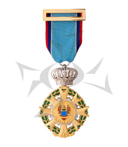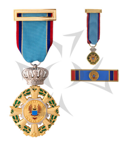 Juego de Medallas elaboradas en crisocal y troqueladas, excelentes acabados en plata antigua, esmalte de color y cinta de calidad Moire. Empacado en estuche de pana japonesa.